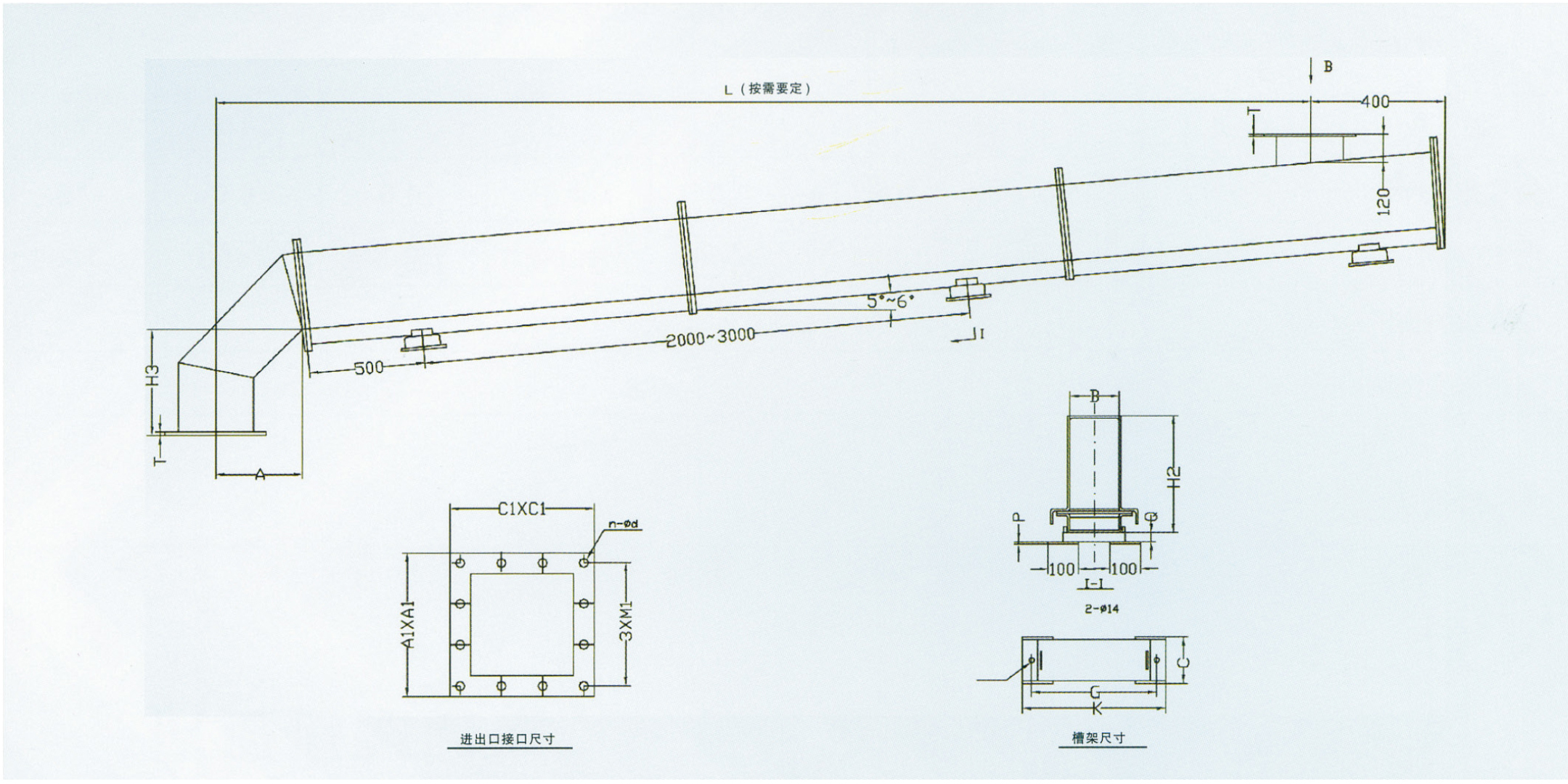 斜槽進(jìn)風(fēng)口安裝尺寸圖: