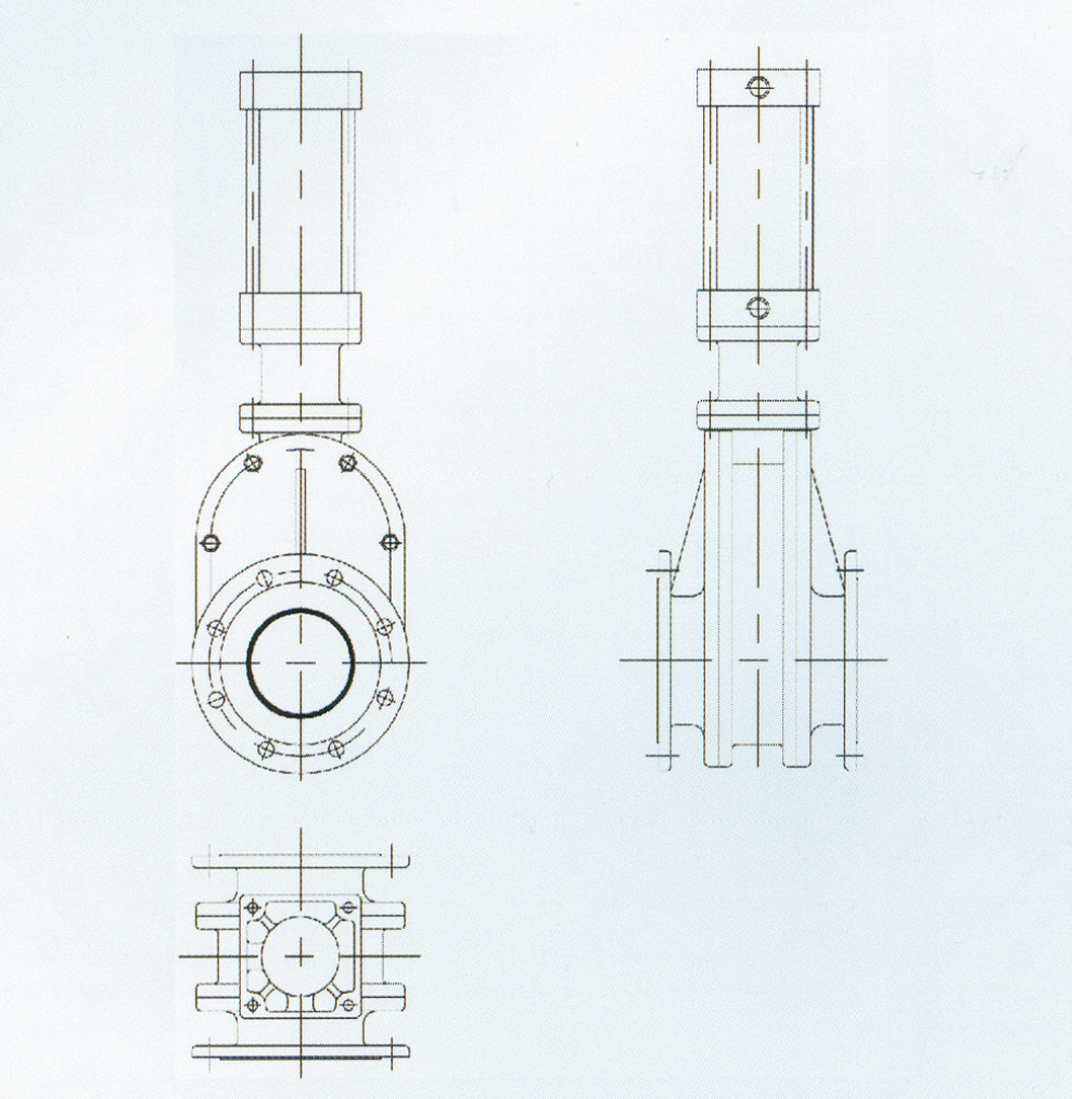 氣動出料閥設(shè)置與發(fā)送器物料出口處,發(fā)送器輸送時,該閥打開,發(fā)送器輸送結(jié)束時,該閥關(guān)閉。工作時,氣缸通過手柄帶動閥芯做回轉(zhuǎn)運(yùn)動,從而打開或關(guān)閉閥門。