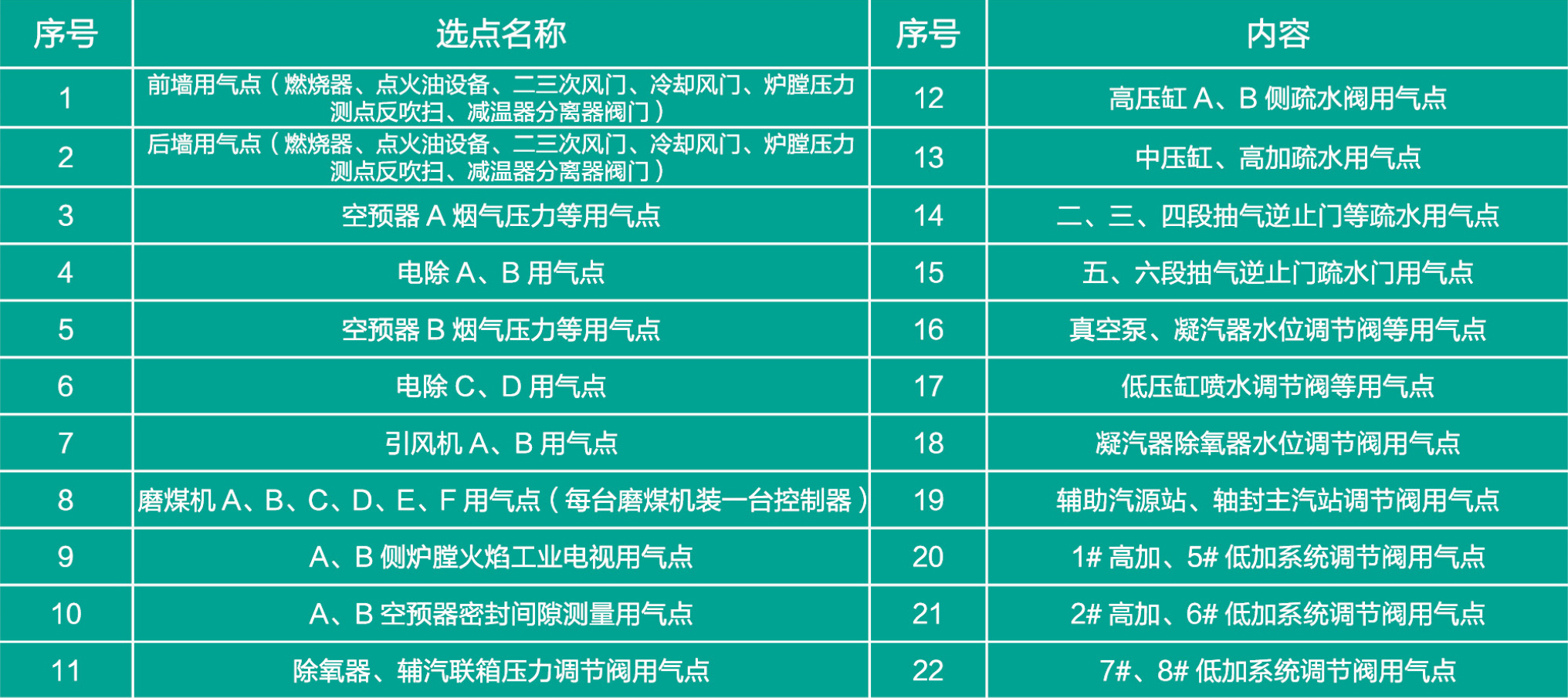 電廠氣源凈化點(125MW-350MW)典型選擇一覽表: