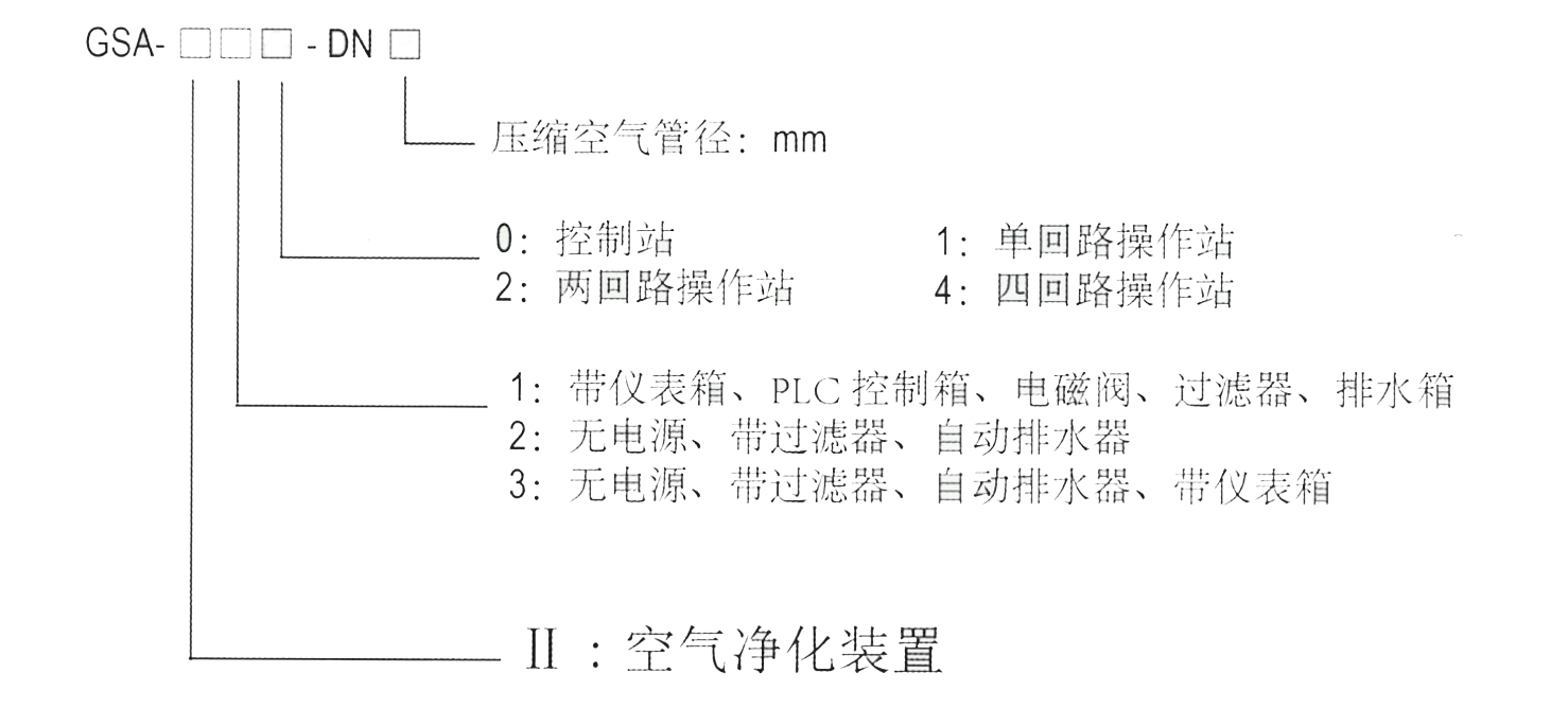 1、壓縮空氣凈化裝置進出口接管一律用由Φ32*2.5。 2、各用氣點接管一律用由Φ14*1。 3、所有設(shè)備裝置選用GSA-111-2-DN25。 4、凈化模式一般采用A模式,也可以按設(shè)計圖采用其他模式。 |